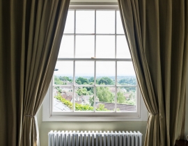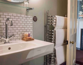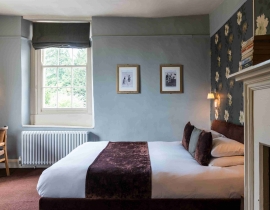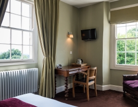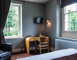 A very sophisticated room with grey's, golds and browns. Dual aspect views of the local church and the pub garden.
