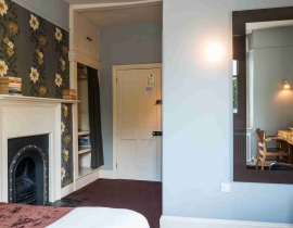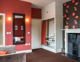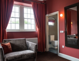 Decorated with reds, oranges and deep browns, Room One has dual aspect views of the local church and has the optional extra of a single sofa bed for one additional guest (extra £20 B&B).