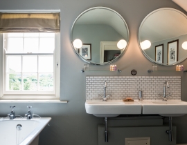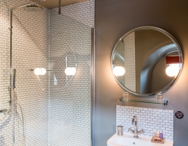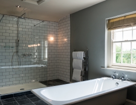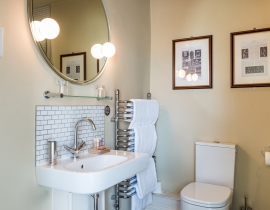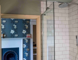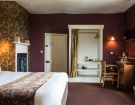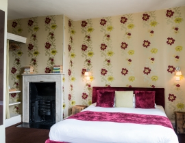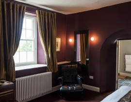 Room Four is our most romantic room. Sumptuous colours, deep purples, iridescent golds, this room boasts a beautiful en suite bathroom with a 6ft freestanding cast iron bath, walk-in monsoon shower and his and her's basins.